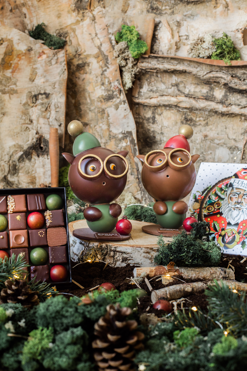 Réalisation d’un univers pour illustrer les créations de noël de la marque Edward Chocolatier, mise en scène et photographie.